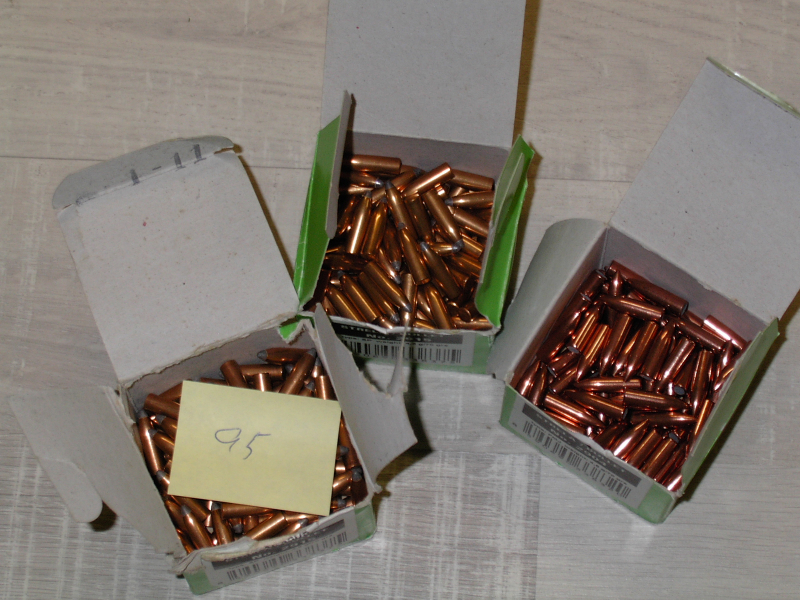 Zum Verkauf kommen S+B Geschosse im Cal. 5,6/223 , 195 Stck 70 gr. Softpoint No. 2915 sowie 100 Stck 70 gr FMJ No. 2904, also insgesamt
