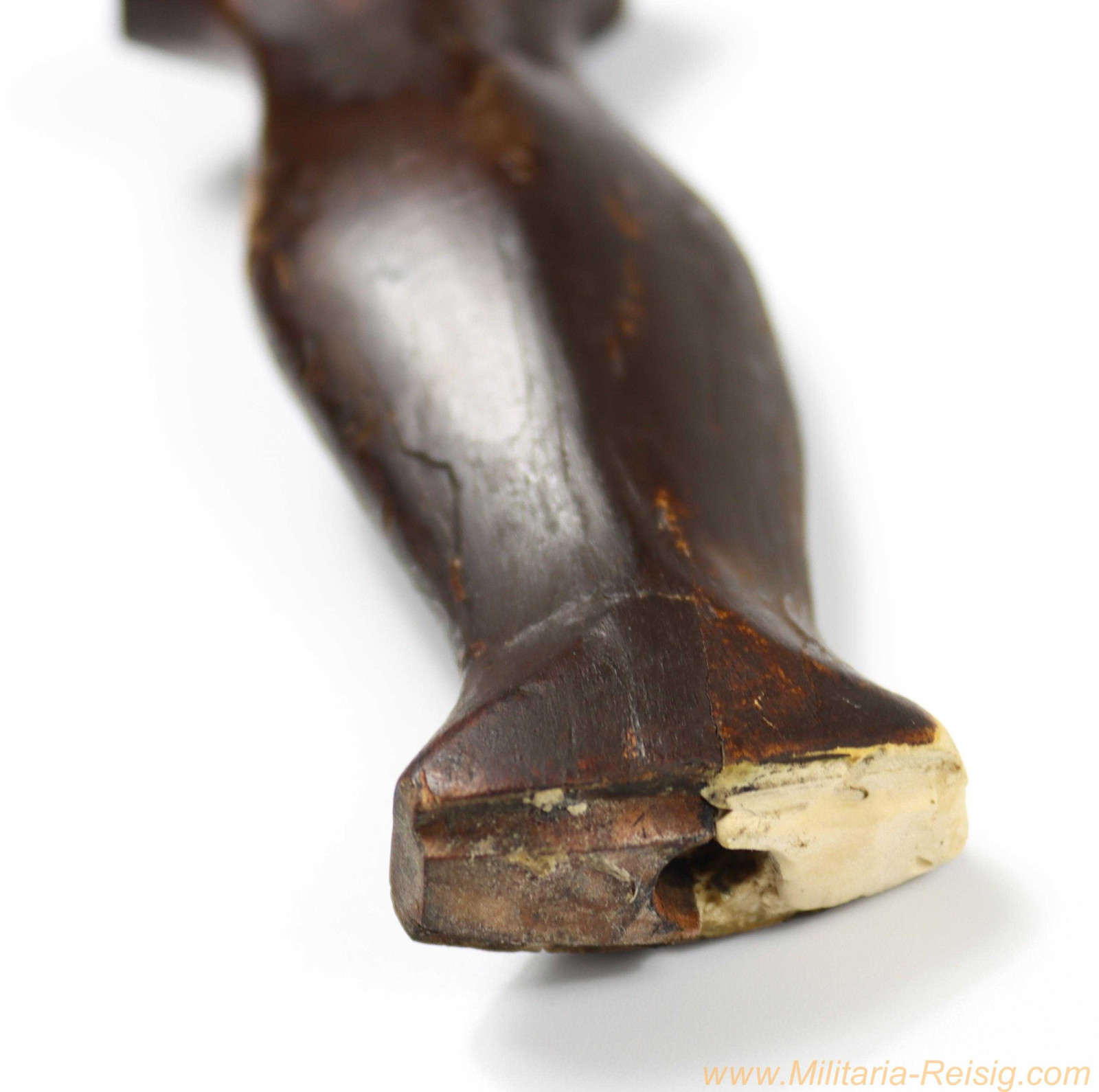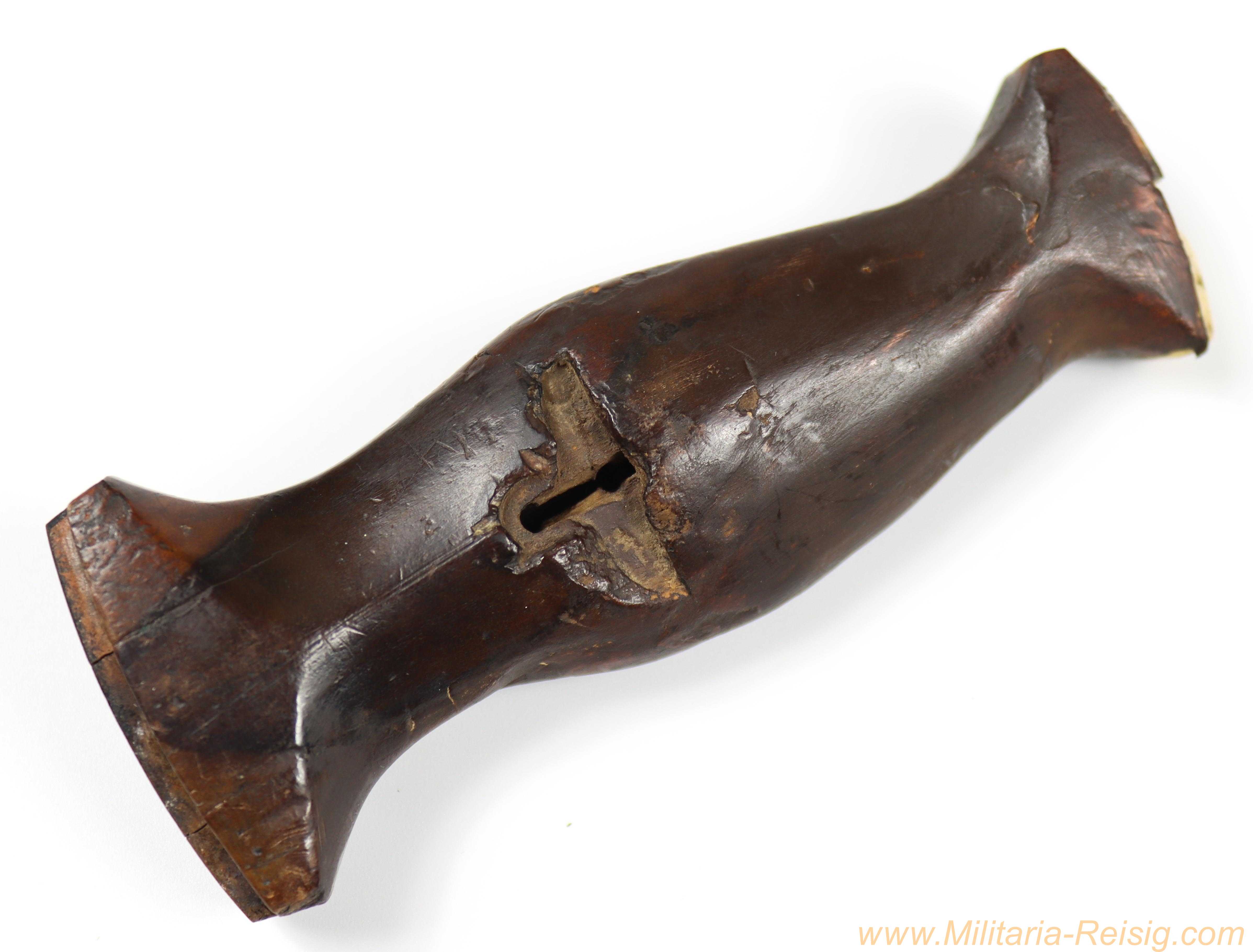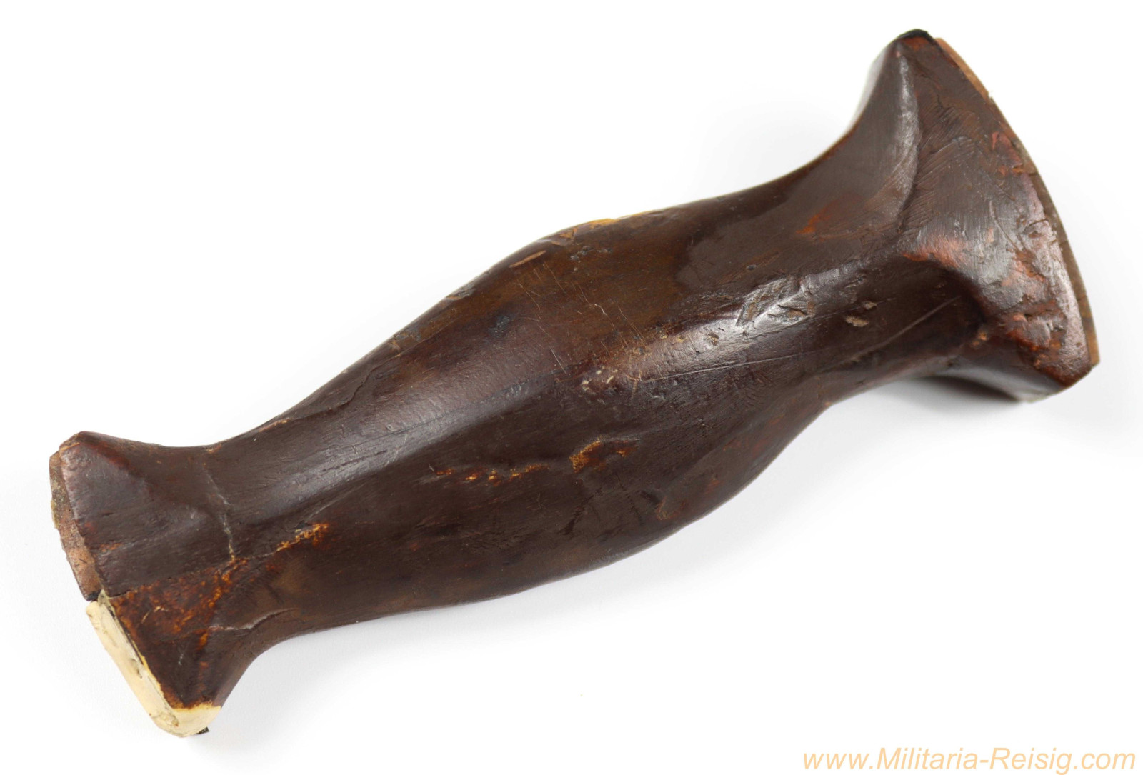Originaler Holzgriff eines SA-Dolches ohne sichtbare Embleme. Die typische SA-Pastille ist nicht mehr vorhanden bzw. nicht erkennbar. Mit alters- und gebrauchsbedingten Spuren, ideal als Ersatz- oder Restaurationsstück.