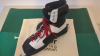- SAUER Gewehrschießschuh PERFECT Top / Perfect X weiß/schwarz in Größe 45, Schnürsenkel rot - SAUER Gewehrschießschuh PERFECT Top / Perfect X Klettverschlüße zur Stabilisierung in rot - SAUER Gewehrschießschuh PERFECT Top / Perfect X Equipmentbeutel - SAUER Sohlenspanner