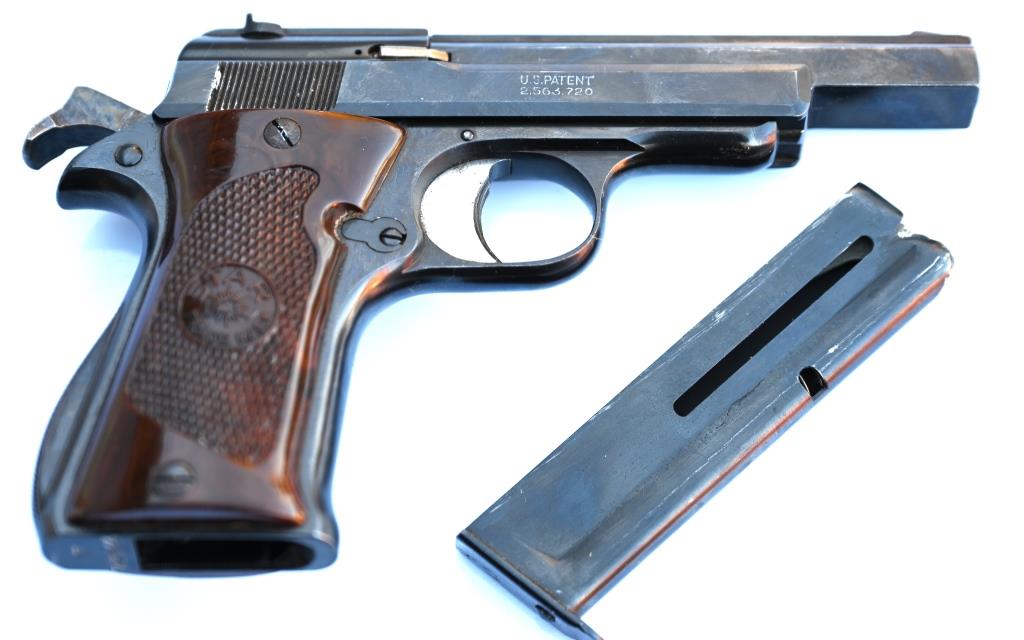 Neuwertige Selbstladepistole, Pistole, Sportpistole, Sammlerwaffe, Gebrauchspistole mit Single-Action-System und außenliegendem Hahn