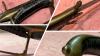 Das Griffleder trotz des Alters in sehr guten Zustand, die Klinge wurde dem Anschein nach sehr viel geputzt (gut gemeint, aber nicht 100% gut gemacht..).