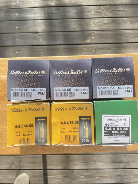 Verkauft werden 290 Patronen Kaliber 6,5 x 55 SE von Sellier & Bellot, Geschoss FMJ 140 Grains / 9,1 Gramm.