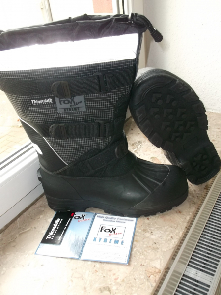 Neue und ungetragene Fox Outdoor XTREME Thermostiefel für Winteransitz oder Freizeit. Die Stiefel haben Gr.45, fallen aber etwas größer aus. Mit individuell einstellbaren Verschlüssen und herausnehmbaren Innenschuh. Versand im Originalkarton. Dieses ist ein Privatverkauf ohne Garantie und Gewährleistung, keine Rücknahme, siehe auch myGun.