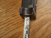 Der Drücker ist gängig und der Tragehacken ist locker sowie rostnarbig, siehe Bilder.