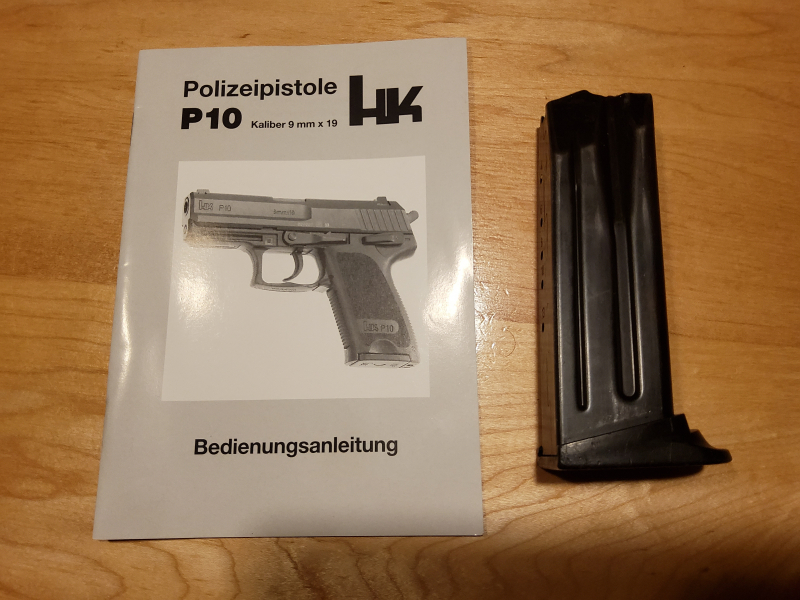 Sie bieten hier auf ein Magazin und eine Bedienungsanleitung für die Pistole Heckler & Koch P 10 / USP compact. Das Magazin faßt 13 Patronen 9x19mm Para.Privatverkauf keine Garantie oder Rücknahme. bitte vor dem Bieten "My Gun" lesen. Viel Spaß beim bieten.