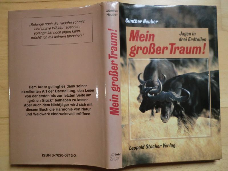 MEIN GROSSER TRAUM! - Jagen in drei Erdteilen - von Günther Neuber, Leopold Stocker Verlag Graz 1995, 164 Seiten mit diversen Abbildungen - Inhalt u.a.: Jagdparadies Kurische Nehrung / Gefährliche Entenjagd / Der Erziehungselch / Der Urian / Der Schrapnell-Bock / Der karelische Birkenelch / Afrikanisches Scherzo / Jagdabenteuer Yukon / Hartebeest und Oryxjagd / Auf Elan und Warzenschweine / uam / Guter bis sehr guter Zustand