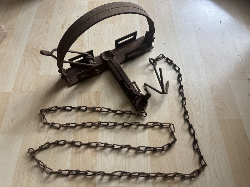 Alte DDR 1984 Dresden Jagdfalle Eiabzugseisen Schwanenhals Marderfalle Schlagfalle Tellereisen
