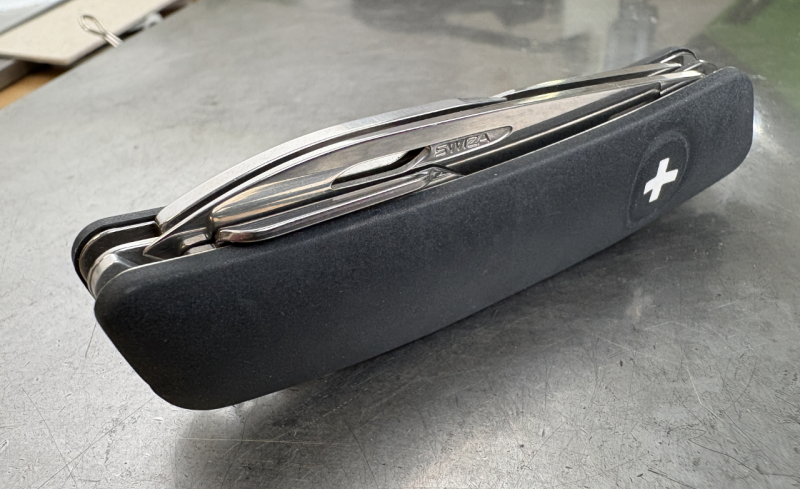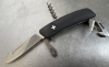 Ähnlich wie die Messer von Victorinox, ebenfalls aus der Schweiz, hat dieses Messer eine feststellbare Hauptklinge, die sich jedoch nicht mit einer Hand öffnen lässt. Dieses Exemplar ist fast neuwertig, wurde nur sehr leicht benutzt und die Klinge ist noch rasierscharf.