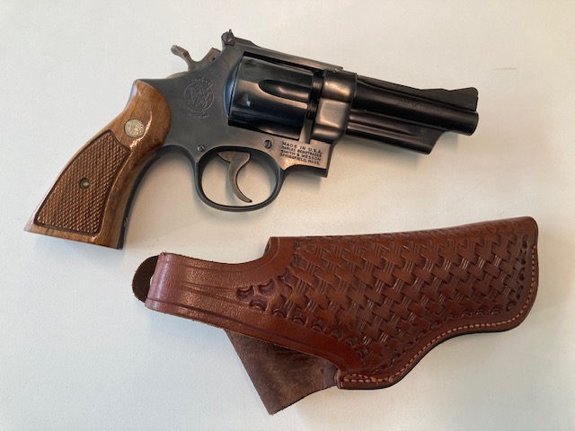 S&W Revolver 28-2 "Highland Patrolman" ,von 1975, in guten Zustand (Schrankwaffe), 6- schüssig, 4"-Lauf, incl. Leder Gürtel-Holster
