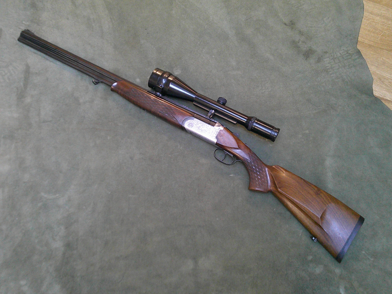 Bockbüchsflinte Antonio Zoli Kal. 7x65 R-16/70 mit Zielfernrohr Kahles Helia-L 3-12x56 Absehen 1, Schwenkmontage, geringe Gebrauchspuren, kein Rost, Läufe blank.