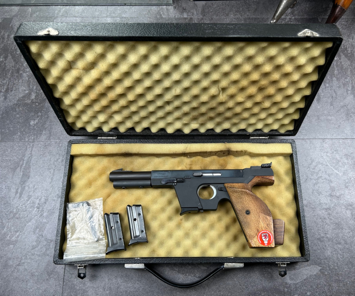 Walther Sportpistole "OLYMPIA" OSP, im Kal. 22kurz oder short, im Original Walther Koffer, inkl. 3Magazinen, keine Gebrauchspuren auf dem Metall oder Holz, super gepflegt, Beschuß ist ULM 66, kein Zubehör,