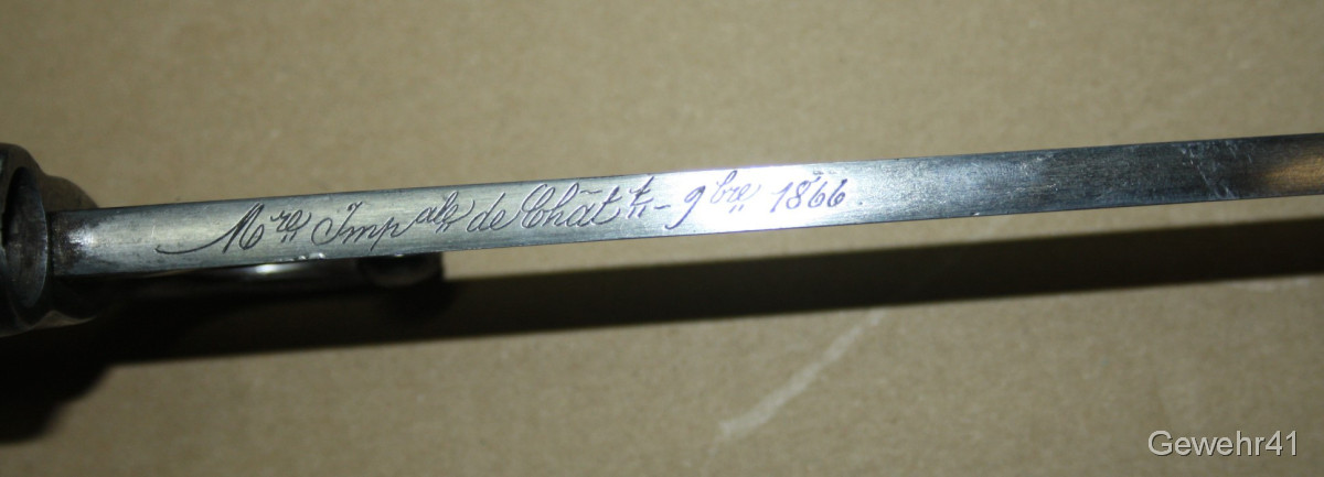 Sie bieten auf ein orig. Yatagan Bajonett für Chassepot 1866. Nummerngleiches Stück im wirklich schönen Zustand. TOP!
