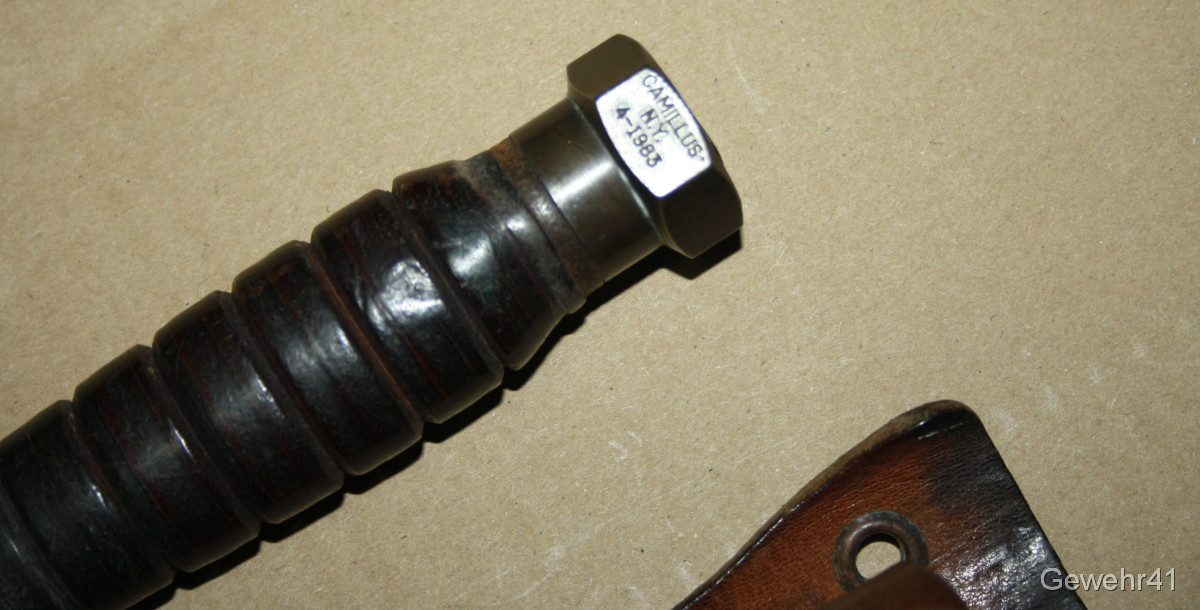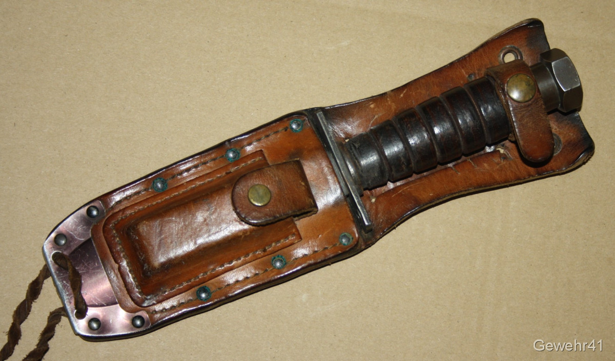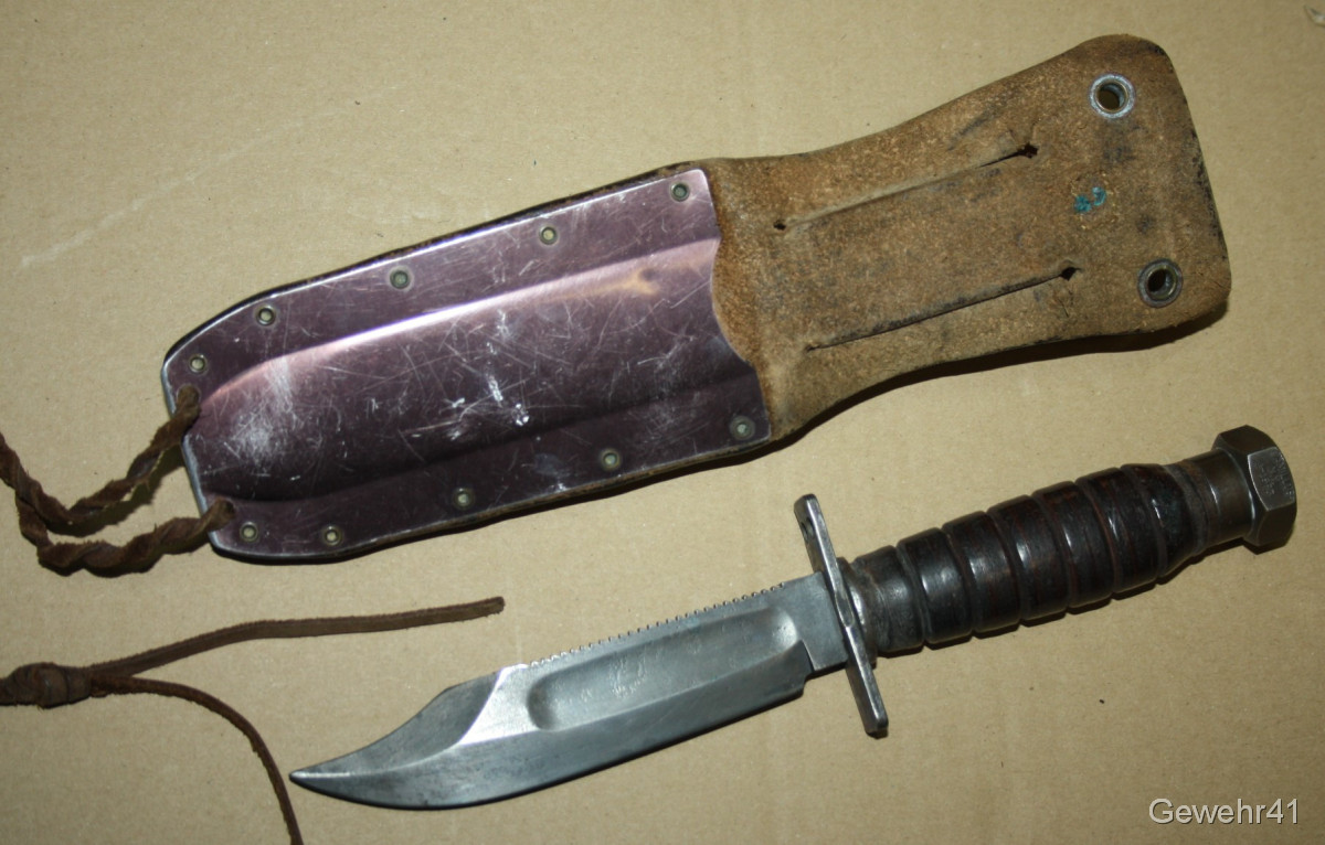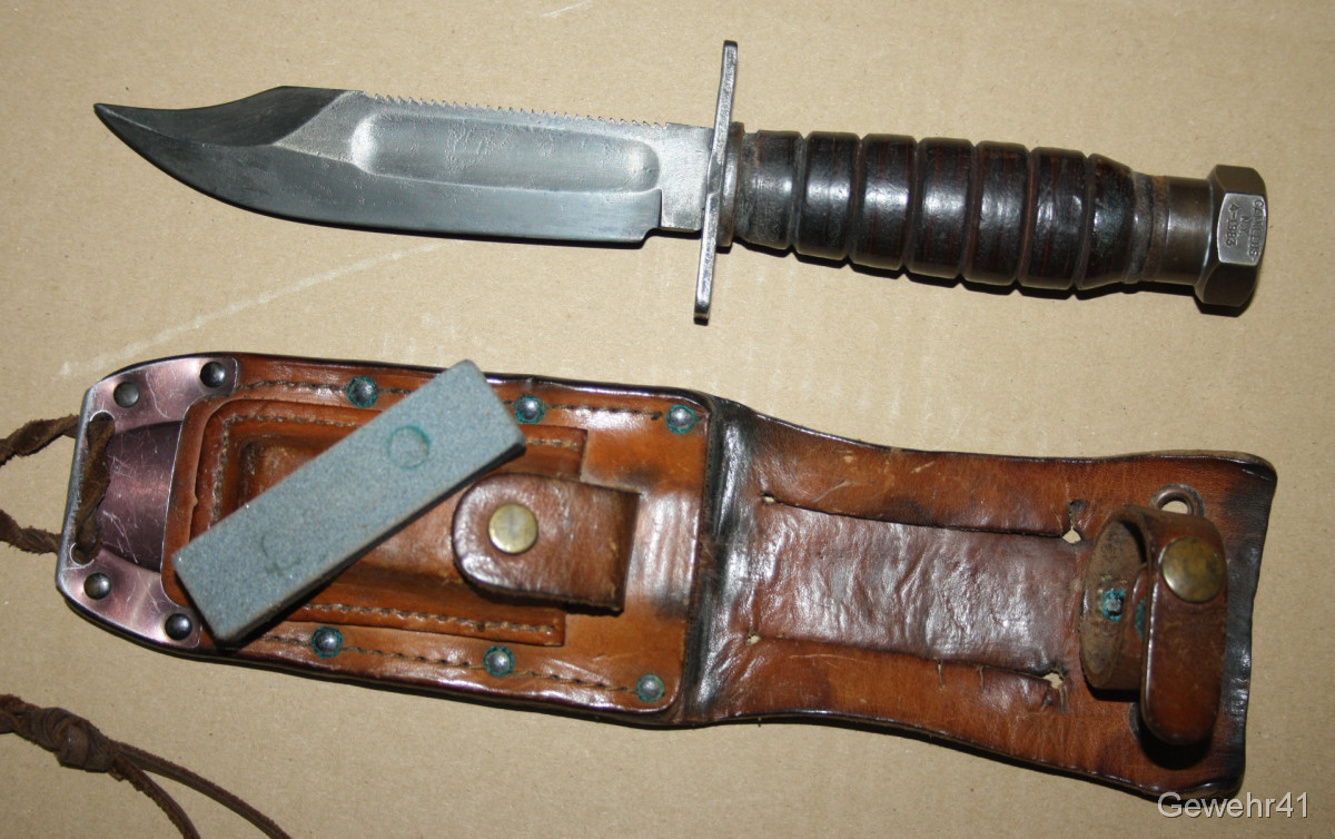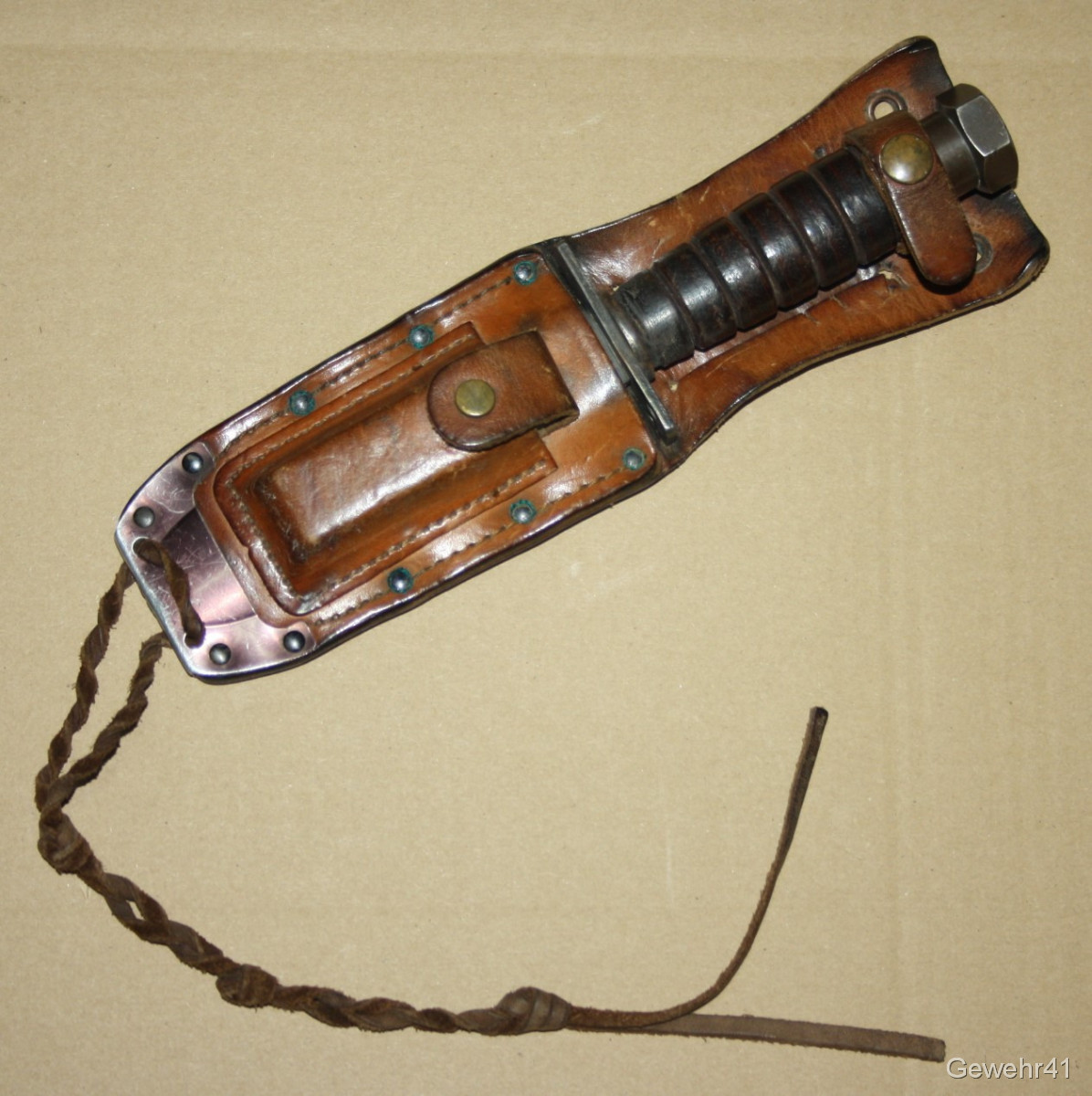 Sie bieten auf ein seltenes CAMILLUS US Piloten Überlebensmesser, komplett mit dazugehöriger Lederscheide und Feuerstein. Schöner Zustand!