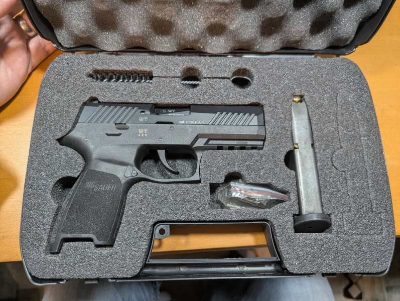 Dieser extrem hochwertig verarbeitete Nachbau der Sig P320 wurde im Kaliber 9 mm P.A.K. produziert. Das ergonomische Griffstück der Pistole vermittelt dem Schützen eine sichere Handhabung und wurde aus extrem robustem Kunststoff gefertigt. Der restliche Teil der Waffe wurde aus unterschiedlichen Metallkomponenten gefertigt, wodurch einer langen Funktionsfähigkeit nichts mehr im Wege steht (bei sachgemäßer Handhabung). Ein vorteilhaftes Feature ist, wie bei eigentlich allen Dienstpistolen der Firma Sig Sauer, das extrem leichte Zerlegen der Waffe. Da so, die notwendigen Wartungsarbeiten sehr leicht und schnell durchzuführen sind.