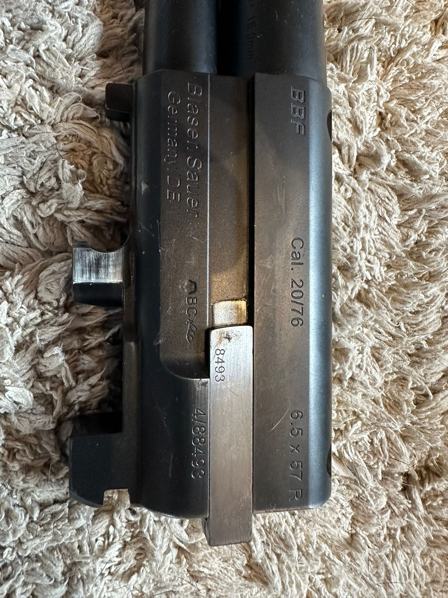 Blaser Bockbüchsflinte im Kaliber 20/76& 6,5x57r die Waffe ist aus dem Jahr 2012, leichte Gebrauchsspuren am Schaft (siehe Bilder) die Läufe sind Blank und ein Hervorragendes Schussbild.