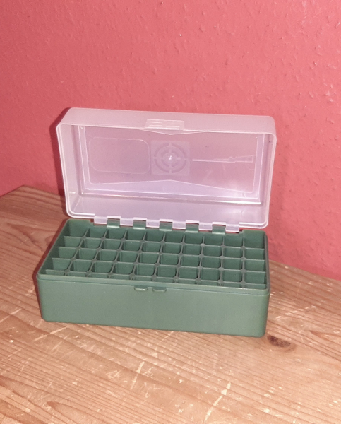 Munitionsbox für 50 Patronen 223. GRÜN Kunststoff Klappdeckel