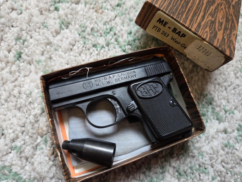 Hier verkaufe ich eine ME BAP Taschen-Schreckschusspistole im begehrten Kaliber 8mm K.