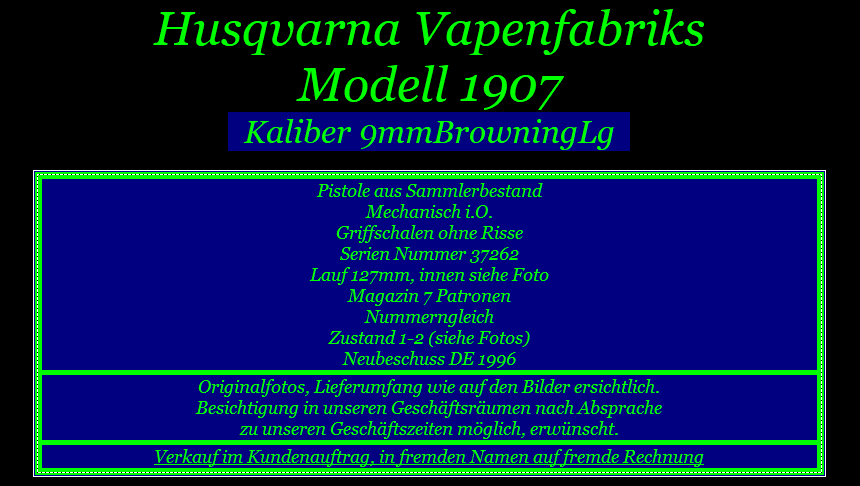 Husqvarna Modell 1907 Kaliber 9mmBrowningLg