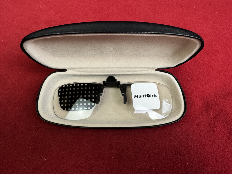 Macht aus Ihrer Brille eine preiswerte Schießbrille! - Irisblenden vergrößern die Schärfentiefe, d.h. den Entfernungsbereich, in dem man scharf sehen kann. Eine hohe Schärfentiefe ist besonders wichtig beim Schießen mit offener Visierung (Kurzwaffen, Ordonanzgewehr), wo man möglichst Kimme, Korn und Ziel gleichzeitig scharf sehen möchte. Der Multi-Iris Brillen-Clip wird einfach auf die normale Brille aufgesetzt. Wenn sich Ihre Sehschäfe ändert benötigen Sie keine neue Schießbrille, Sie setzen einfach den Brillen-Clip auf Ihre neue Brille. Durch die Vielzahl an Blenden ist kein justieren erforderlich und man hat eine gute Gesamtübersicht. Außerdem gelangt mehr Licht zum Auge, wodurch sich die Pupille nicht zu stark vergrößert.