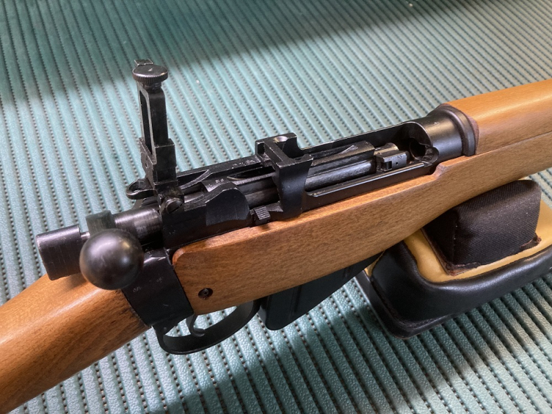 Der Abzug hat noch die üblichen 2,5-2,7 kg. Die Schlossmutter wurde noch nicht bearbeitet. Alles sieht für mich noch sehr original aus.