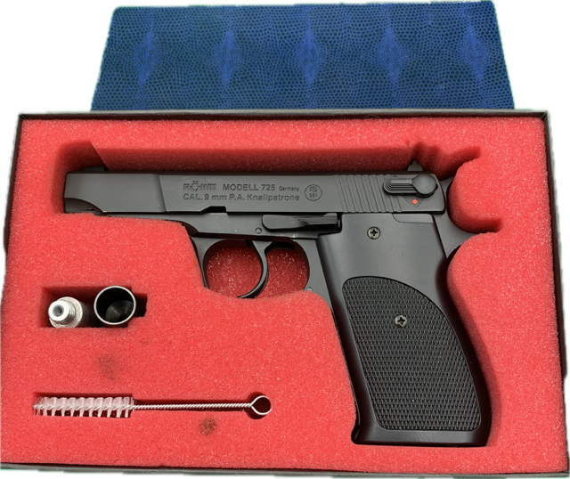 Ich biete hier aus Nachlass meines Vaters - einen Schreckschusspistole von Rhöm Modell 725 9mm P.A. Knall im Originalkarton mit Magazin, Abschussbecher und Reinigungsbürste. PTB 551 Siehe Fotos ! Keine Beschädigung erkennbar! Testen kann ich sie nicht, da ich keine Platzpatronen in Cal. 9 mm besitze! Zusätzlich gehört ein Spezialabschussbecher zum Lieferumfang. Mehr kann ich leider dazu nicht sagen ! Ich schließe jegliche Sachmängelhaftung aus! privates Angebot ohne jegliche Garantie und Rücknahme ! Abgabe ab 18 Jahren (mit Altersnachweis) ! versicherter Versand mit DHL