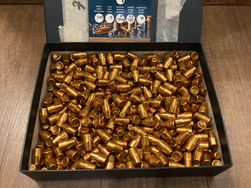 Verkauft werden Ca. 480 St. Geschosse H&N 9mm TC .357 / 127gr. HS