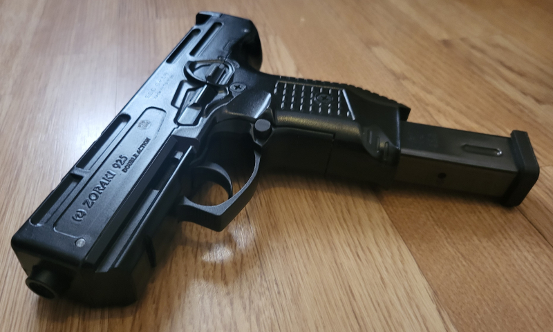 Im Inneren ist es wohl eine modifizierte Zoraki 914 und der Korpus besteht aus Kunststoff.