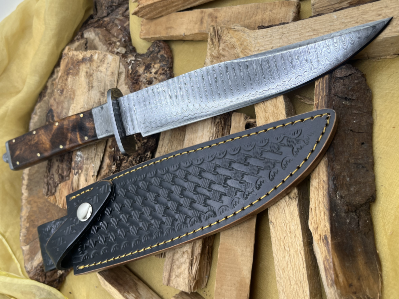 - Typ: Bowie-Messer aus echtem, mehrlagigem Damaststahl (über 200 Lagen)