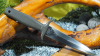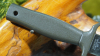 Die Scheide ist aus sehr stabilem dicken Sattelleder gefertig und hat einen Druckknopf mit "Thumb-Snap" so das diese einhändig geöffnet werden kann.