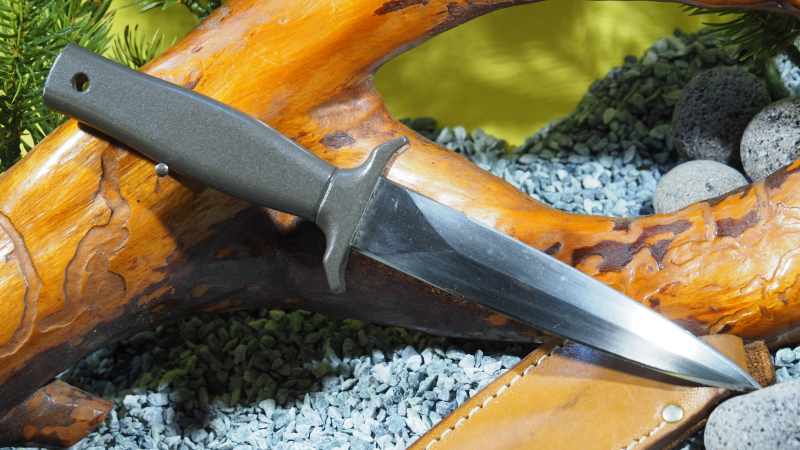 Der Herbertz Stiefeldolch zeichnet sich durch äußerst robuste Verarbeitung aus. Der Griff ist aus Vollmetall und macht das Teil unverwüstlich. Die perfekt geschliffene Klinge ist beidseitig scharf geschliffen. Sie weist einseitig leichte Flecken auf, die von der Aufbewahrung in der Scheide herrühren. Das kann man - wenn man es für nötig hält - auspolieren. Mit der braunen Lederscheide die auf der Rückseite einen Clip hat, lässt sich das Messer unauffällig tragen.