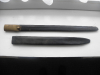 Siehe Bilder. Die große scheide ist 53,5 cm lang und die Öffnung im Messingblech ist oben 2,9 cm x 7 mm.