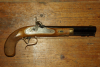 Hawken Pistole, Perkussion, Kaliber.45, fein einstellbarer Abzug, Gelenkkugelsetzer am Schaft befestigt. Wenig geschossen (keine 50 Schuss), technisch in Ordnung. Hersteller Bondini, Italien.