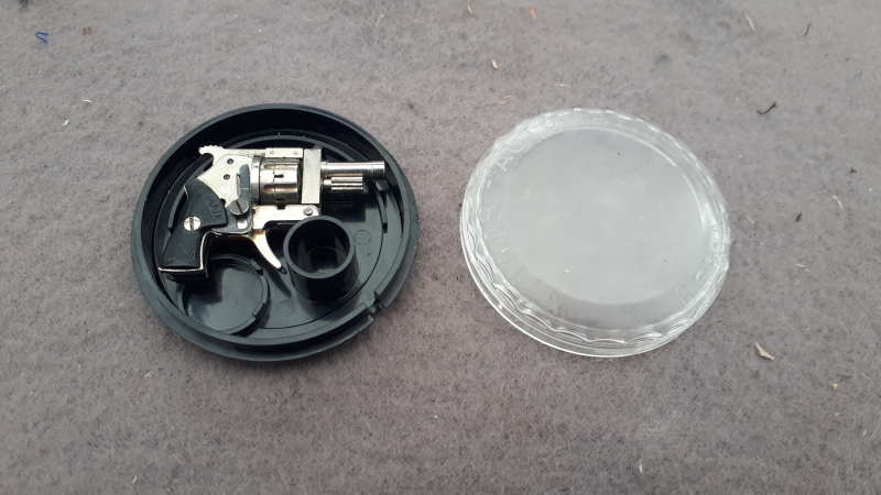 Xythos Revolver ohne weiteres Zubehör. Die Trommel transportiert nicht immer, nur ab und zu. Außerdem fehlt wohl eine kleine Mutter, ( Bild 5 )
