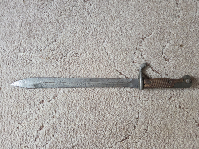 Bajonett, Klingenlänge ca. 36,5cm, Holzgriff leicht brüchig, Klinge Stumpf, leichter Rost