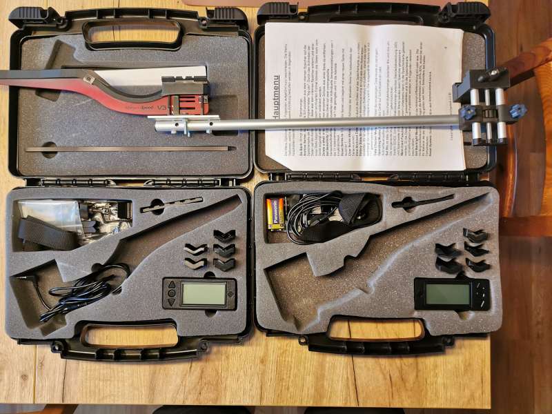 Verkaufe mein Magnetospeed V3 in zweifacher Ausführung aber nur mit einem Bajonett. Das Andere Teil ist beim Training zerstört worden. Dazu gibt es eine Verlängerung mit einem Adapter für eine Picatinny-Schiene. Somit hat man keine Direktverbindung mit dem Lauf und keine Treffpunkt - Verlagerung. Das Magnetospeed V3 misst absolut zuverlässig und genau. Ich habe meine Ladedaten dokumentiert und daher brauche ich den Geschwindigkeitsmesser nicht mehr. Da ich privat verkaufe lehne ich jegliche Ansprüche, Rückgabe oder Gewährleistung ab. Im Lieferumfang ist alles enthalten, wie auf den Bildern zu sehen einschließlich der deutschen Bedienungsanleitung.