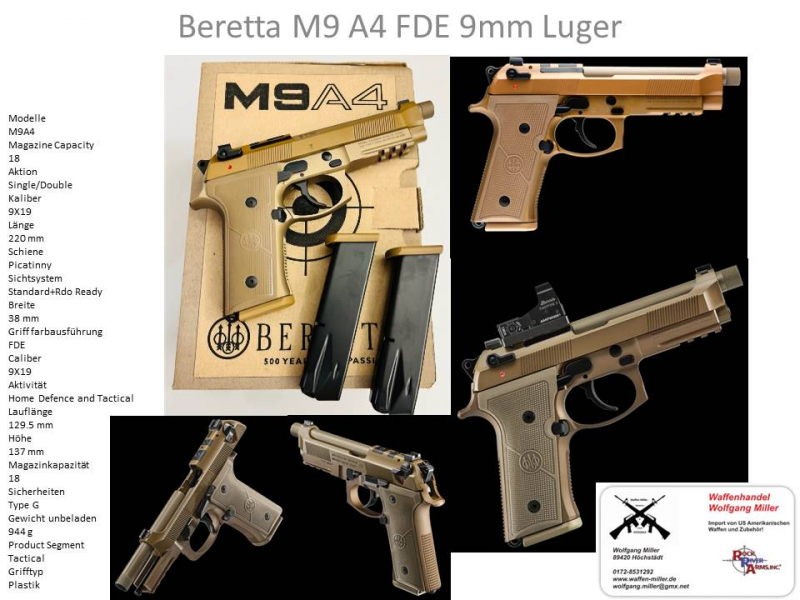 Biete eine in Deutschland nicht erhältliche Beretta US Modell M9A4 im Kaliber 9mm Luger!