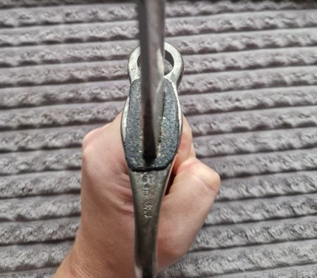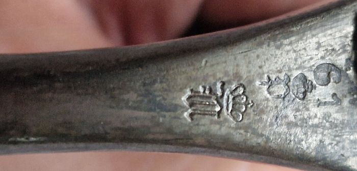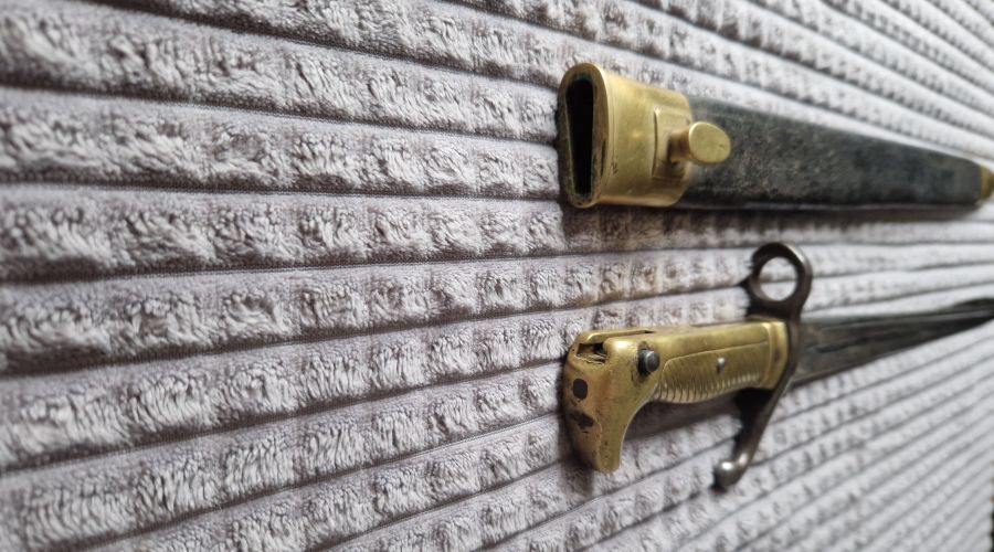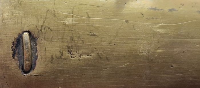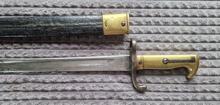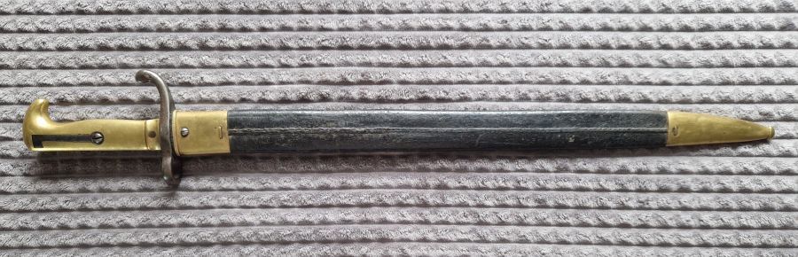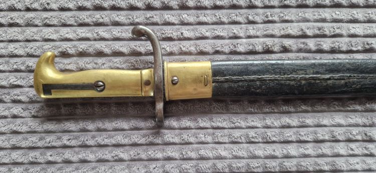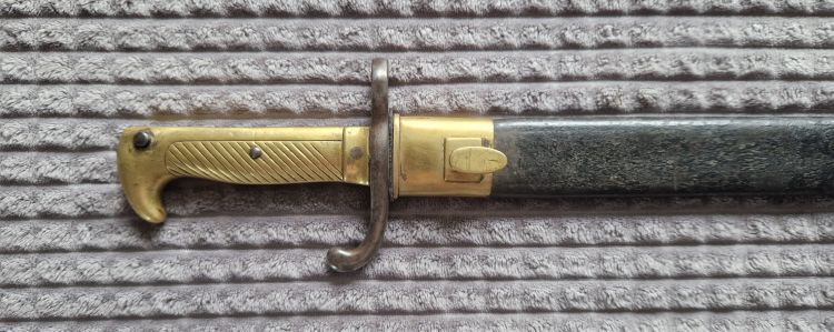 Messinggriff original vernietet. Aufpflanzung mit Drücker (intakt).