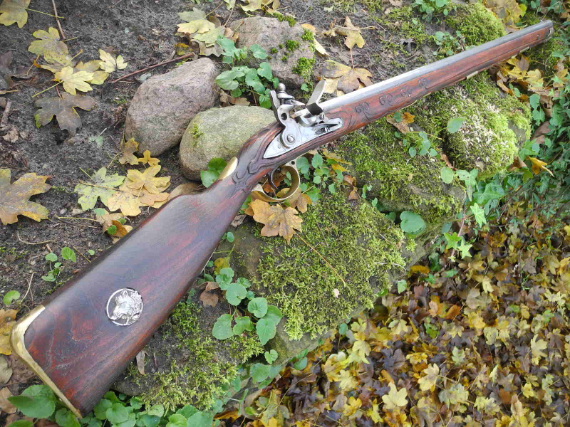 Versteigere aus dem Nachlass eines Freundes eine von ihm selbst gebaute Steinschloßflinte. Einige Teile scheinen original alt zu sein. Der Schaft scheint ein Eigenbau zu sein. Ich habe versucht, so viele Fotos/Nahaufnahmen einzustellen, wie möglich. Bei Bedarf bitte weitere Fotos anfordern. Das Schloss läßt sich nicht spannen und abschlagen. Kal. 15 mm, Versteigere es als Bastelobjekt für lange Winterabende.