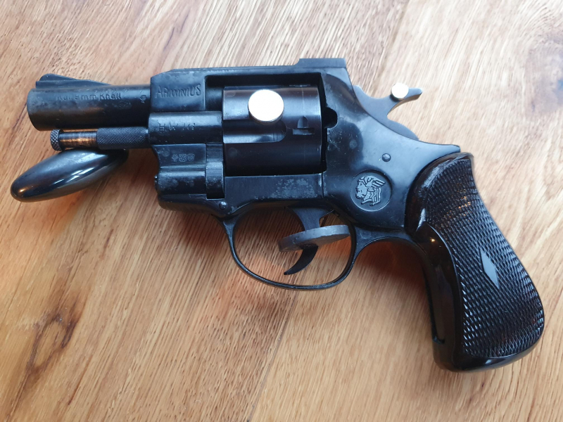 Angeboten wird der kultige Revolver ARMINIUS HW1G Kaliber 9mm R von 1991, in der selteneren PTB-Ausführung 210, inkl. dem Original HW1G-Abschussbecher!