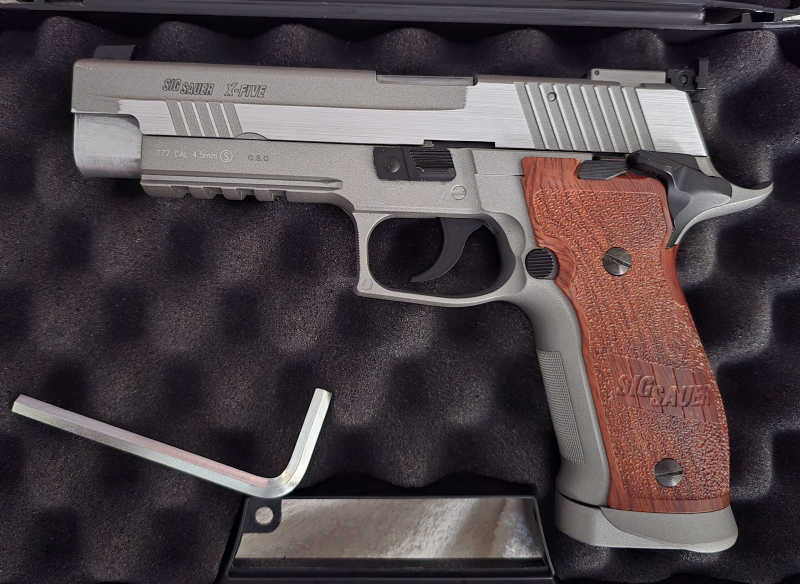 Hallo, biete hier von Sig Sauer die P226 s X-five CO2, Silber Grau, in 4,5mm BB. Die waffe ist im neuwertigen Zustand, mit leichten gebrauchspuren, wurde nicht geschossen. Waffe ist aus metall. Mit dabei anleitung, sechskantschlüssel und Waffenkoffer.