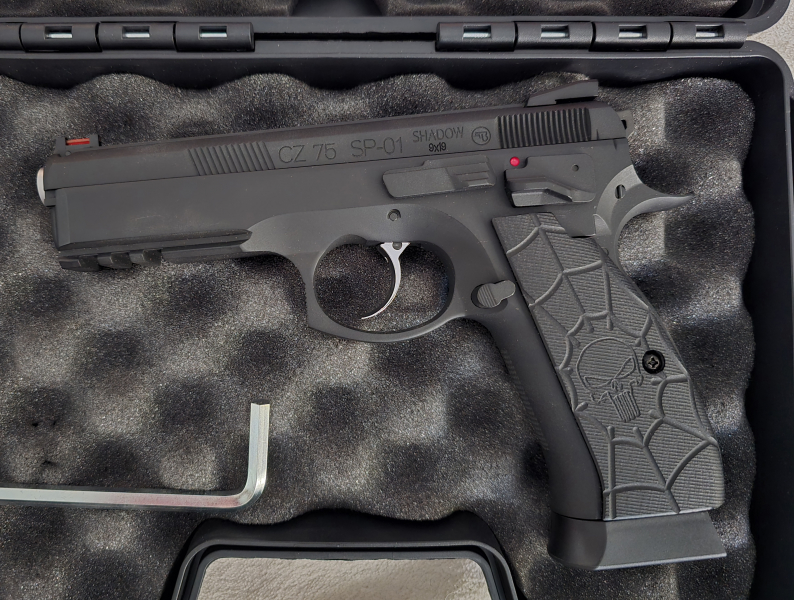 Hallo, biete hier von ASG die CZ 75 SP-01 shadow CO2, Schwarz, in 4,5mm BB. Die waffe ist im neuwertigen Zustand, keine gebrauchspuren, wurde nicht geschossen. Waffe ist aus metall. Mit dabei sechskantschlüssel, und Waffenkoffer. Waffe hat punisher griffe!