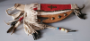 festes, rauhes Leder, verziert mit weichem Hirschleder, rotem filzartigen Stoff