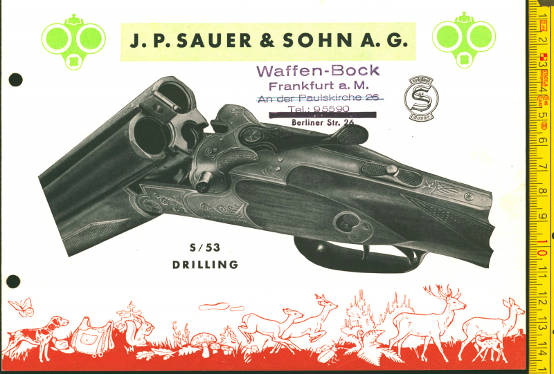 Sie bieten auf 4 Katalogseiten über Sauer-Waffen im Format A5. Die Vorderseite zeigt die jeweilige Waffe, auf der Rückseite wird die Waffe kurz beschrieben.