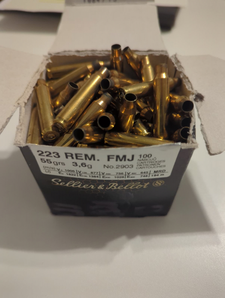 Verkaufe 100 Stück Hülsen von S&B im Kaliber .223 REM. Diese wurden nicht wiedergeladen und stammen von S&B .223 Rem FMJ Patronen.