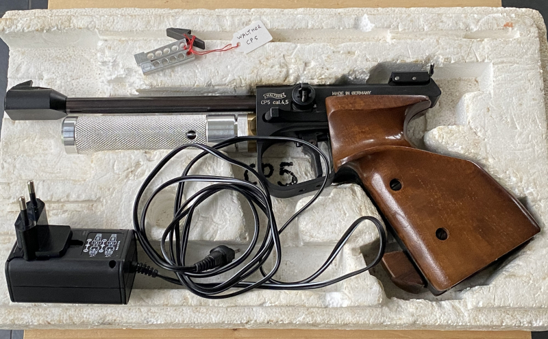 Sie bieten auf eine sehr seltene fünfschussige Walther CP5 CO2 Match Luftpistole in sehr gutem Zustand. Kaliber 4,5mm Diabolo. Inklusive Meditec System für 12g Co2 Kapseln. Die Pistole funktionierte vor kurzem noch einwandfrei, aber die Akkus sind jetzt zu alt, das Ventil öffnet sich nur ab und zu. Die Akkus sind noch erhältlich, man muss nur 5 Stück N-150AA Akku NiCd 1/3 AA-Mignon mit Lötfahne U-Form zusammenlöten und austauschen und dann läuft alles wieder. V0 gemessen 132m/s mit 0,45g Diabolos. Abzug löst bei ~ 80g aus. Die Pistole wird geliefert mit zwei 5-Schuss Magazine, ein Ladegerät (nicht original aber funktioniert gut), einige Co2 Kapseln und die Meditec Bedienungsanleitung. Der Holzgriff ist unverbastelt. Es handelt sich hier um einen Privatverkauf, bei dem ich als Verkäufer jegliche Garantie, Gewährleistung, Haftung und Rücknahme ausdrücklich ausschließe. Das Modell wird geliefert wie abgebildet. Der Versand erfolgt nur gegen Altersnachweis. Der Käufer ist für den gesetzmäßigen Gebrauch des Artikels verantwortlich. Der Bieter erkennt diese Bedingungen bei einem Gebot automatisch an. Viel Spaß beim Bieten!