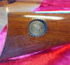 Schön gemaserter Schaft mit eingearbeiteter Silbermünze.