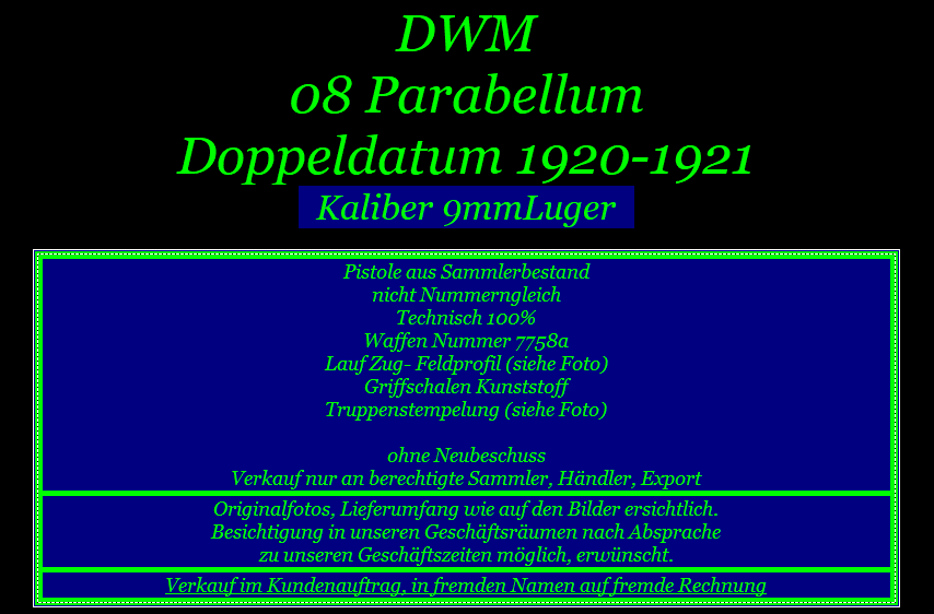 DWM 08 Parabellum 1920-1921 Kaliber 9mmLuger