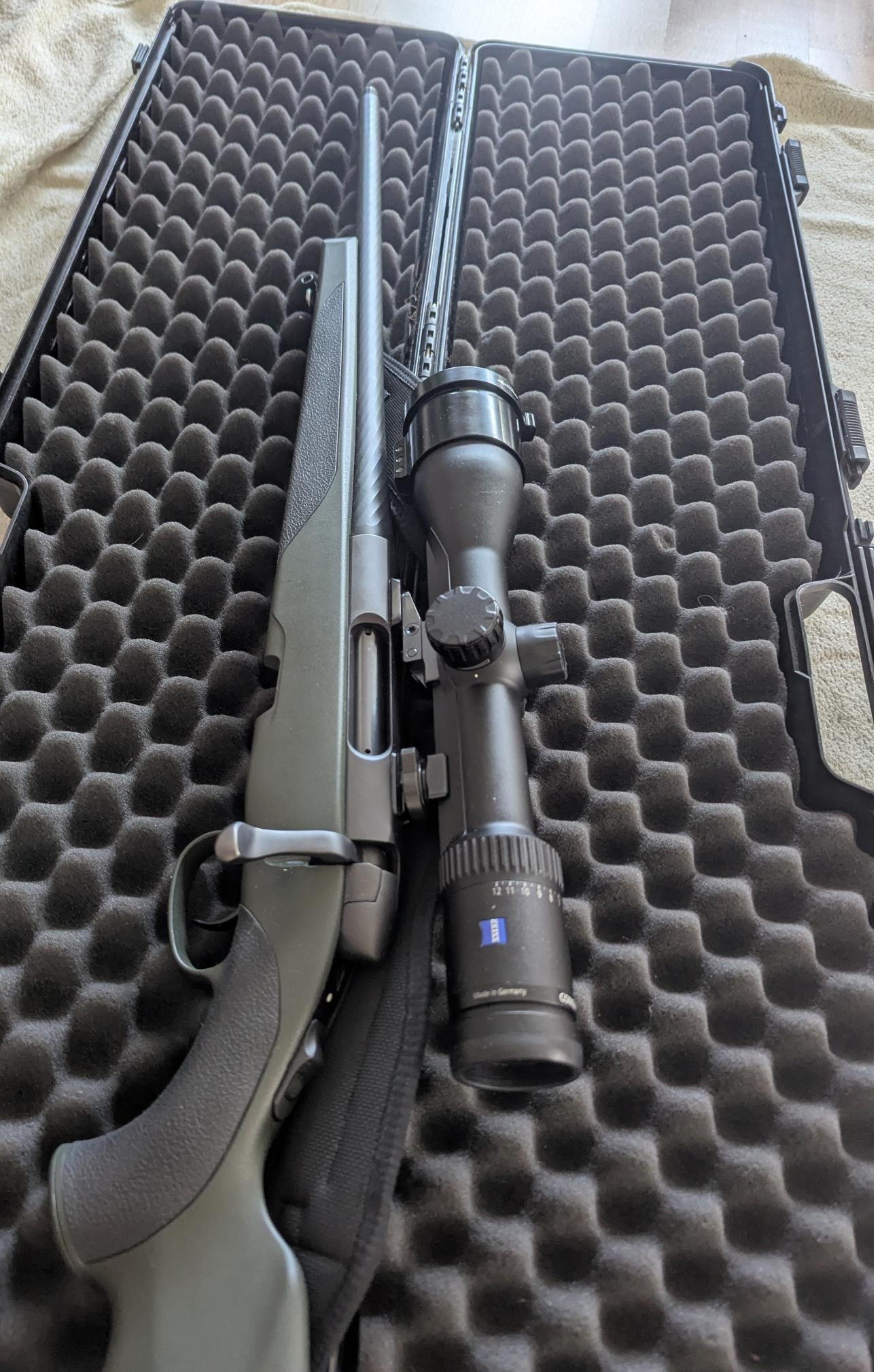 Ich verkaufe meine fein abgestimmte Kombination von Steyr SM12 SX Linksrepetierer, Handspanner, Kombiabzug inkl. Stecher mit Zeiss Conquest V6 2-12x50 (montiert mit Schwenkmontage) und Hausken JAKT XTRM JD224 MKII Schalldämpfer.