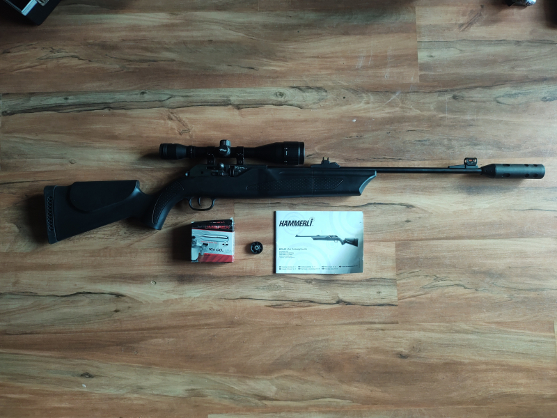 Zum Verkauf kommt das abgebildete Luftgewehr mit allem abgebildeten Zubehör, Ersatzmagazin, Gebrauchsanweisung, F Schalldämpfer und Walther Zielfernrohr 6x42