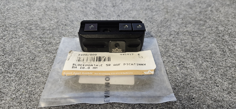 Sie bieten auf eine neuwertige und sehr robuste EAW Picatinny / Weaver Blockmontage für Zielfernrohre mit Swarovski SR Schiene. Die Bauhöhe ist 10mm und passt somit bei fast jeder ZF / Waffen Kombination. Der Zustand ist neuwertig.